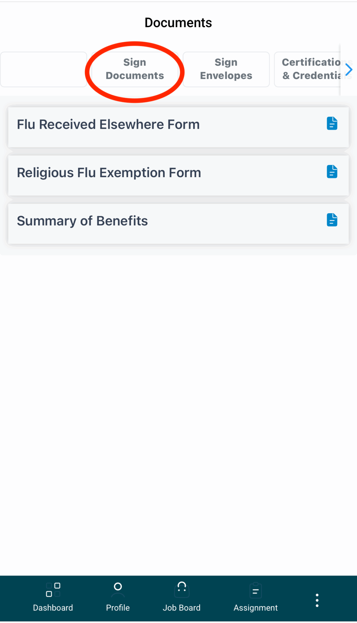 Scroll through the screenshots below to find where you will sign your HIPAA and Job Description documents.