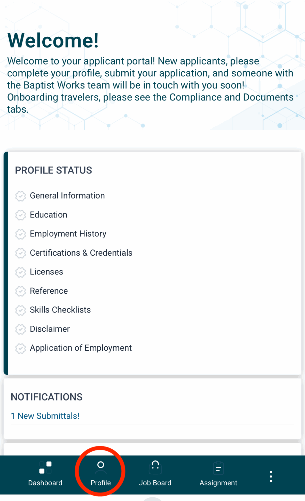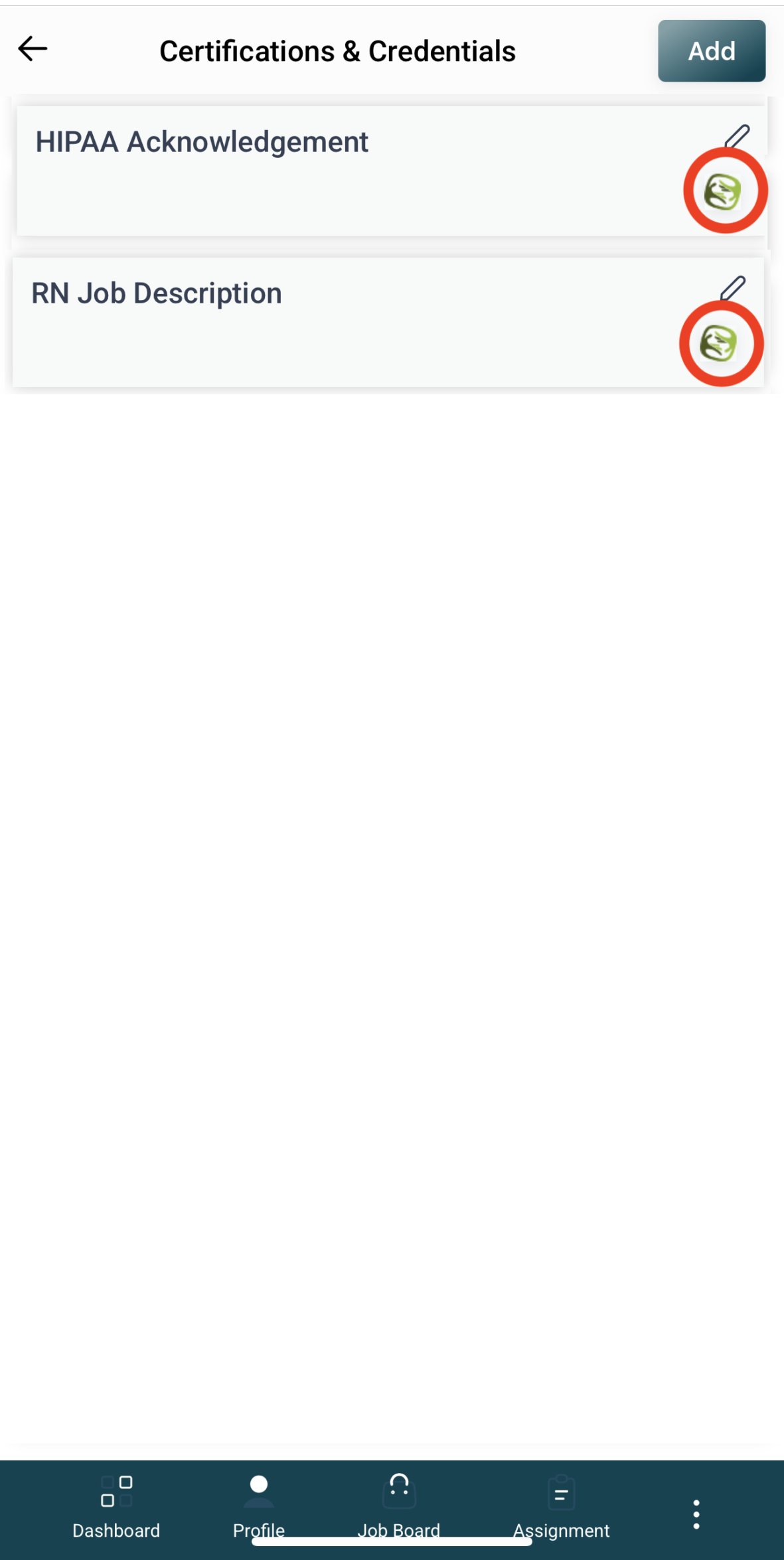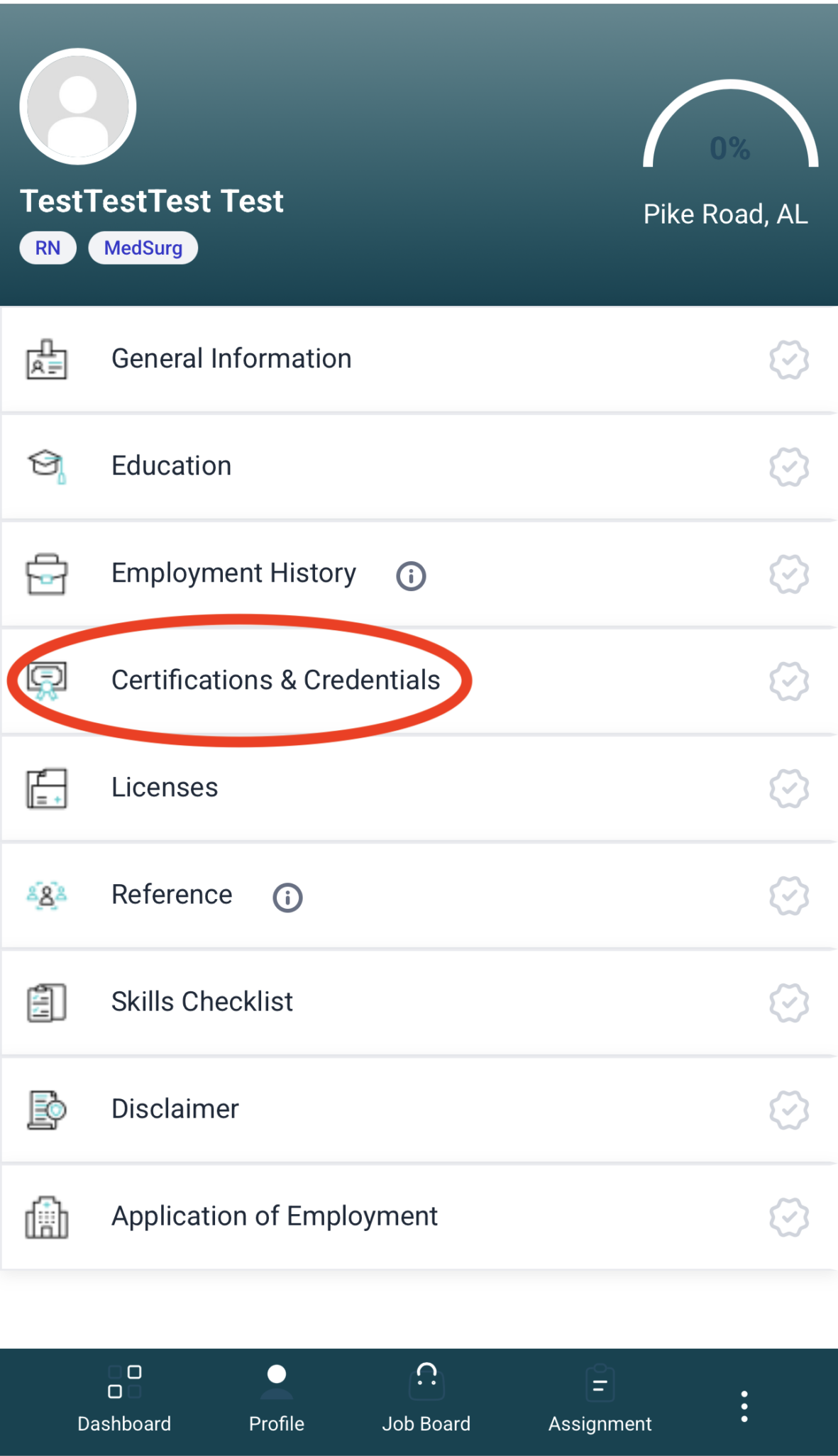 Scroll through the screenshots below to find where you will upload certifications and other credentials.