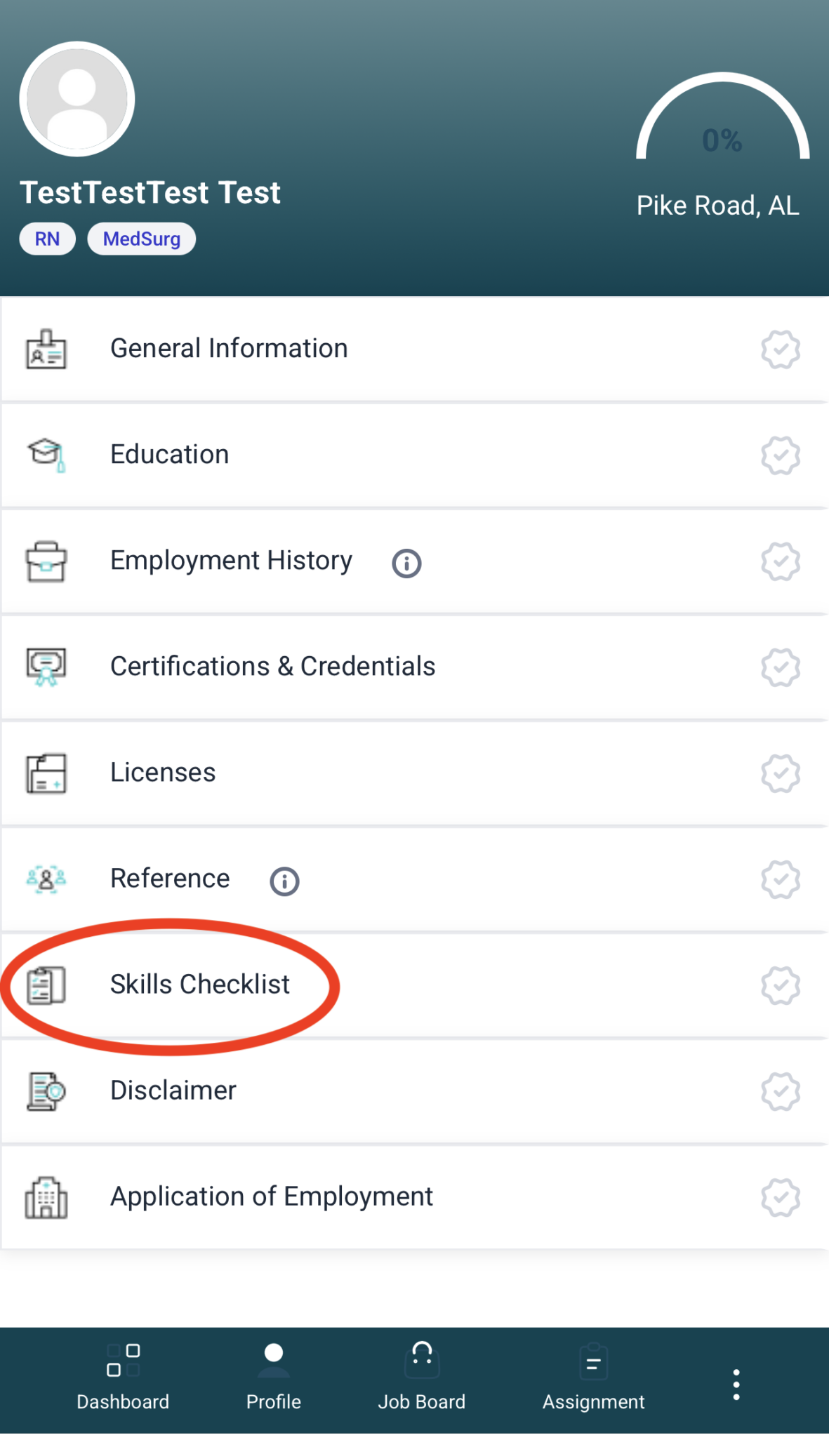 Scroll through the screenshots below to find where you will fill out and sign your skills checklist.